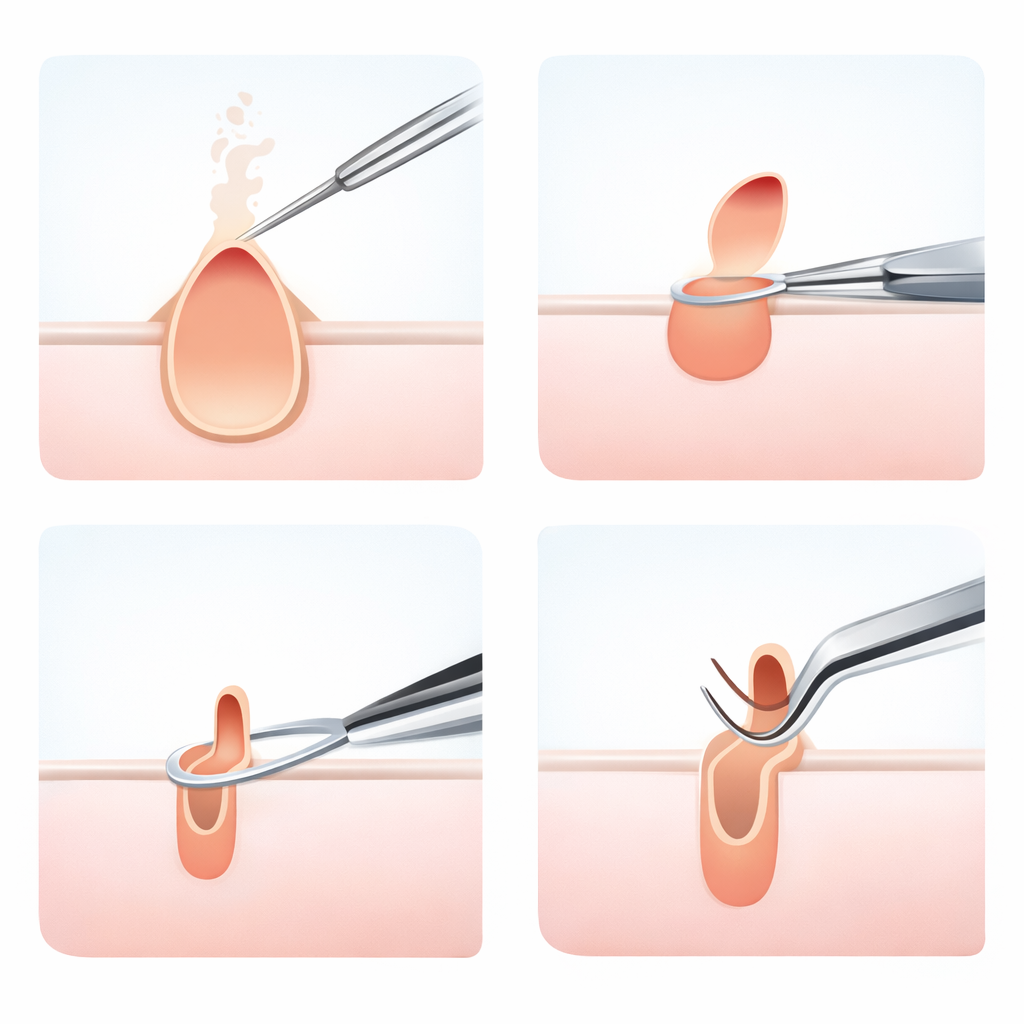 3️⃣ Utilize a agulha de forma gentil, apenas na lateral da acne